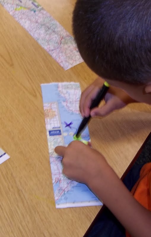 Highlighters are fun because you can draw and still see through it. Maps make a great different medium to draw on. The kids used these materials in a few different ways.